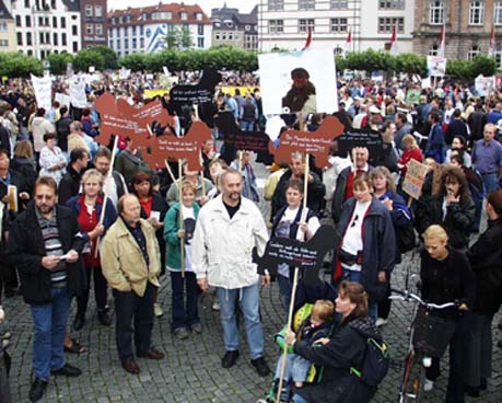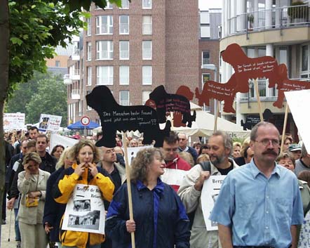 Die zentrale Demo gegen die LHV-NRW fand am 22. Juli 2000 in Düsseldorf statt. Trotz der Sommerferien haben mehr als 10 000 Hundefreunde friedlich demonstriert. Wir waren dabei.