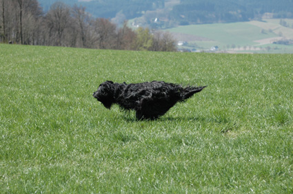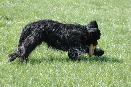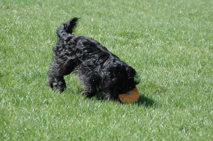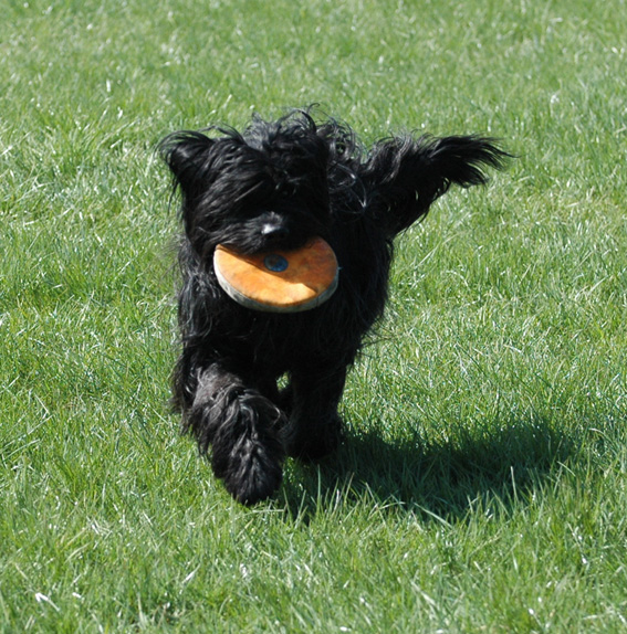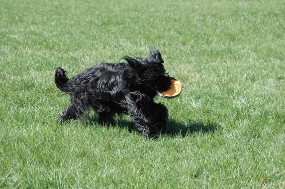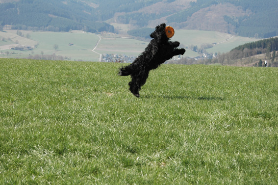 Nach erfolgreicher Zuchtzulassung entspannt sich Rania beim Spiel mit ihrer Frisbyscheibe.