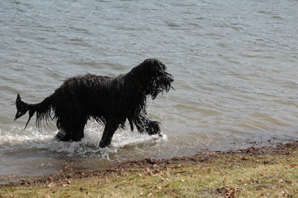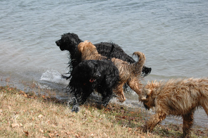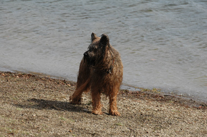 Bei trockenem, aber kaltem Aprilwetter zogen wir unsere Runde entlang des Biggedamms und später auch am Wasser. Die Hunde konnten ausgiebig toben, sie genossen den Schlamm am Wegrand und ihr erstes Bad im kalten Biggesee.