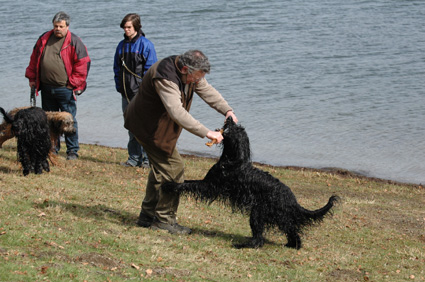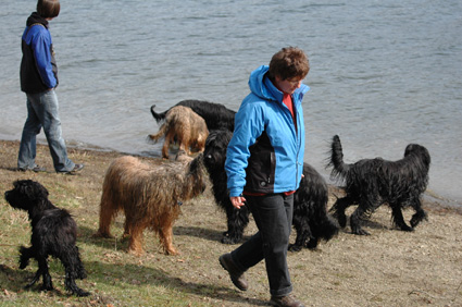 Wir haben zum Spaziergang am Karfreitag eingeladen und 12 Hunde aus unserer Zucht sind mit ihren Menschen gekommen. Die Hündin mit den kupierten Ohren gehört praktisch auch zur Familie. |