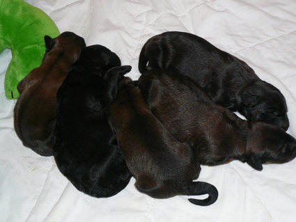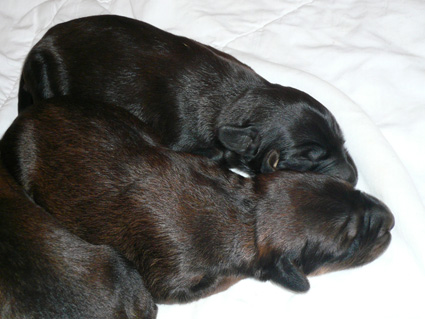 Sari brachte am 10. Januar 2008 6 Welpen zur Welt: 3 Rüden (2 fauve, 1 noir) und 3 Hündinnen (2 noire und 1 fauve) |