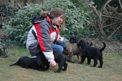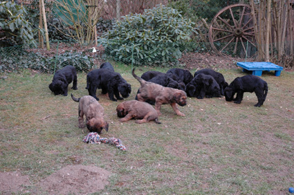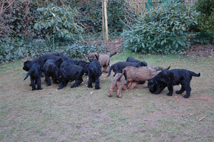 Besuch bei Simone und ihren acht fast gleichaltrigen schwarzen Welpen in der Zuchtstätte du Bohemienne noire.