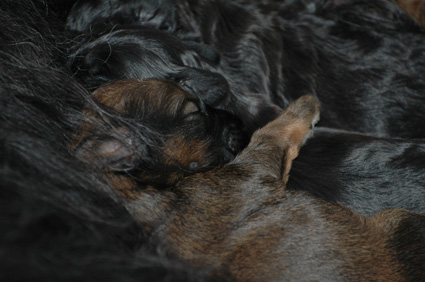 Die Welpen trinken fast nur und schlafen danach.