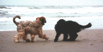 Wenn die Welpen in ihr neues Zuhause abgeholt werden, reißt der Kontakt jedoch nicht ab. Die meisten von ihnen sehen wir bei Spaziergängen, Arbeitsgruppen oder einige auch auf Ausstellungen wieder. Zusätzlich werden viele Telefonate geführt oder Briefe geschrieben. So bekommen wir seit dem letzten Wurf öfters Post aus Südfrankreich, ganz in der Nähe vom Jardin des Colombières. Einen Welpen aus unserem ersten Wurf haben wir vor vielen Jahren nach Kolumbien abgegeben, der vom Welpenerwerber persönlich bei uns abgeholt worden ist, während er hier in Deutschland geschäftlich zu tun hatte. Da der Welpe mit 10 Wochen ja noch so klein war, durfte er in der Reisetasche mitfliegen und mußte nicht in den Gepäckraum. In Kolumbien sind dann die Ohren nachträglich kupiert worden. Allerdings meinte der dortige Tierarzt, es sei nicht nötig, sie zu kleben. Danach hatte der Briard schöne kleine kupierte Schlappohren. Er ist inzwischen leider verstorben. Manchmal ist es eben doch besser, auf den Rat des Züchters zu hören.