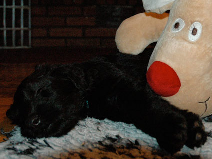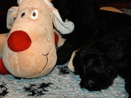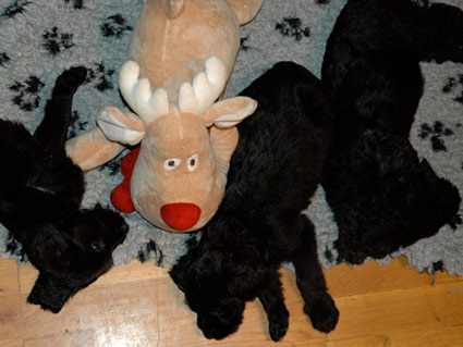 Weihnachten bei den sieben Zwergen (nun sechs Wochen alt). Wie man sieht ist die Arbeit am Elch