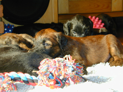 Ein Wochenende im Wohnzimmer. Die Welpen sind jetzt vier Wochen und zwei Tage alt. Die Bilder sprechen für sich. |