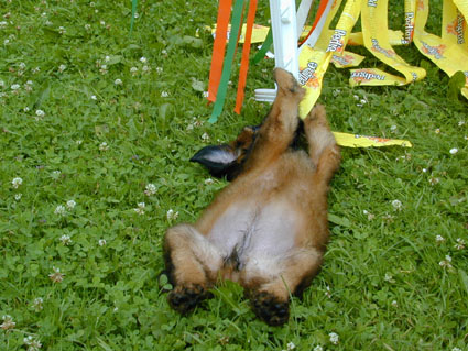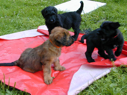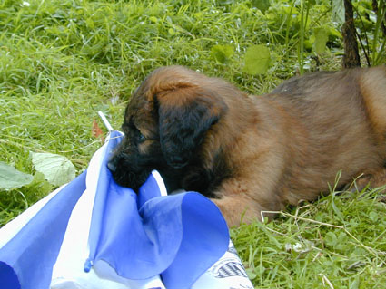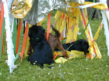 Die Welpen sind jetzt 6 1/2 Wochen alt. Das Wetter ist toll und im Garten gibt es immer etwas zu erleben. |