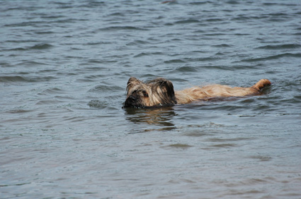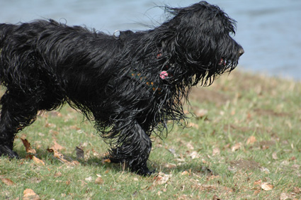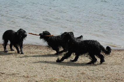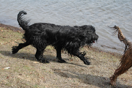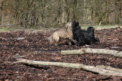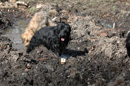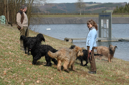 Bei trockenem, aber kaltem Aprilwetter zogen wir unsere Runde entlang des Biggedamms und später auch am Wasser. Die Hunde konnten ausgiebig toben, sie genossen den Schlamm am Wegrand und ihr erstes Bad im kalten Biggesee.