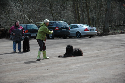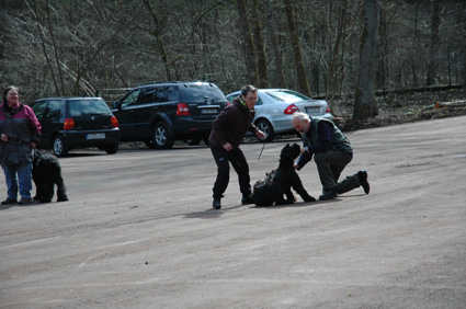 Nach einer kurzen Pause bei Kaffee und Kuchen gab es dann für die Hunde eine kleine Übungsstunde, bei der das Sozialverhalten und die Halterbindung im Vordergrund standen.