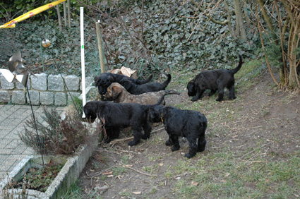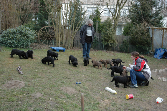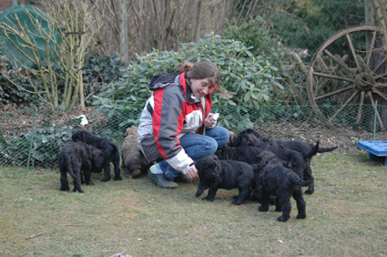 Besuch bei Simone und ihren acht fast gleichaltrigen schwarzen Welpen in der Zuchtstätte du Bohemienne noire.