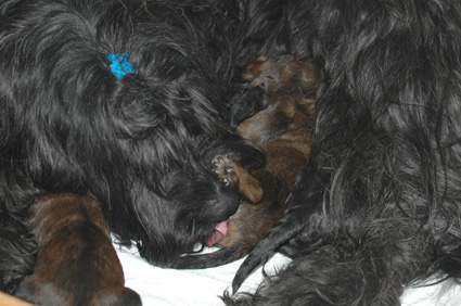 eingeschlafen. Sari zieht nun 3 Rüden und 2 Hündinnen aufzieht, die