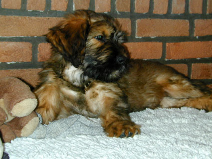 Das letzte Bild zeigt den ersten Welpen aus dieser Serie. Er ist jetzt 12 Wochen alt geworden und wohnt nun in Stuttgart. Mit diesem Bild schließen wir unser kleines Fotoalbum von Jamilas erstem Wurf. Wir freuen uns auf die Sonntage, denn da treffen wir die meisten von ihnen in unserer Welpengruppe wieder. Tschüß. |
