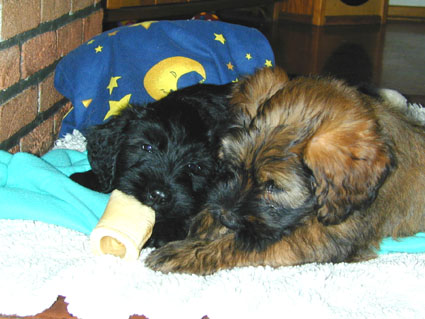 Wir haben noch schnell ein paar Kopfstudien gemacht. Sie zeigen deutlich, wie typvoll die kleinen Briards jetzt schon sind.